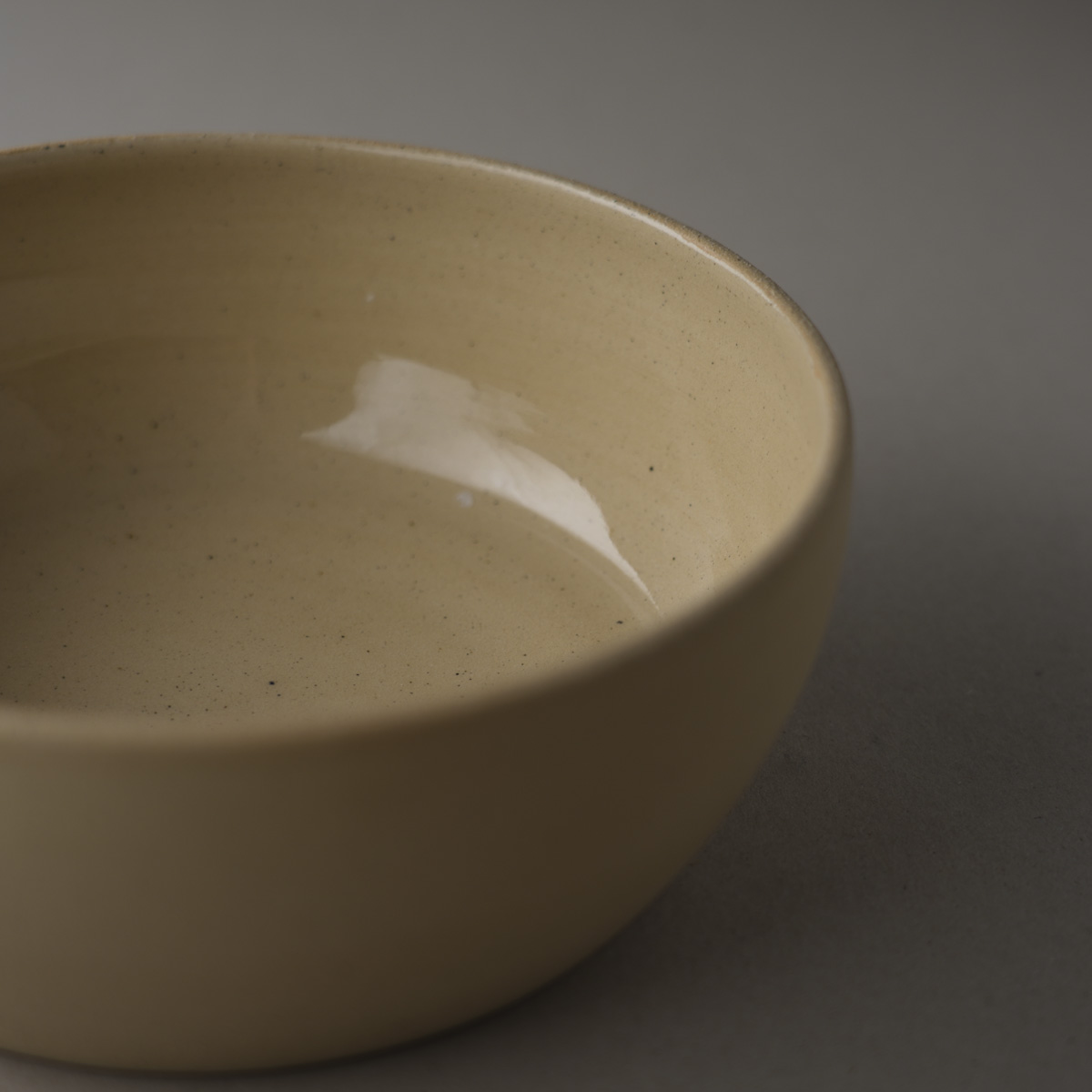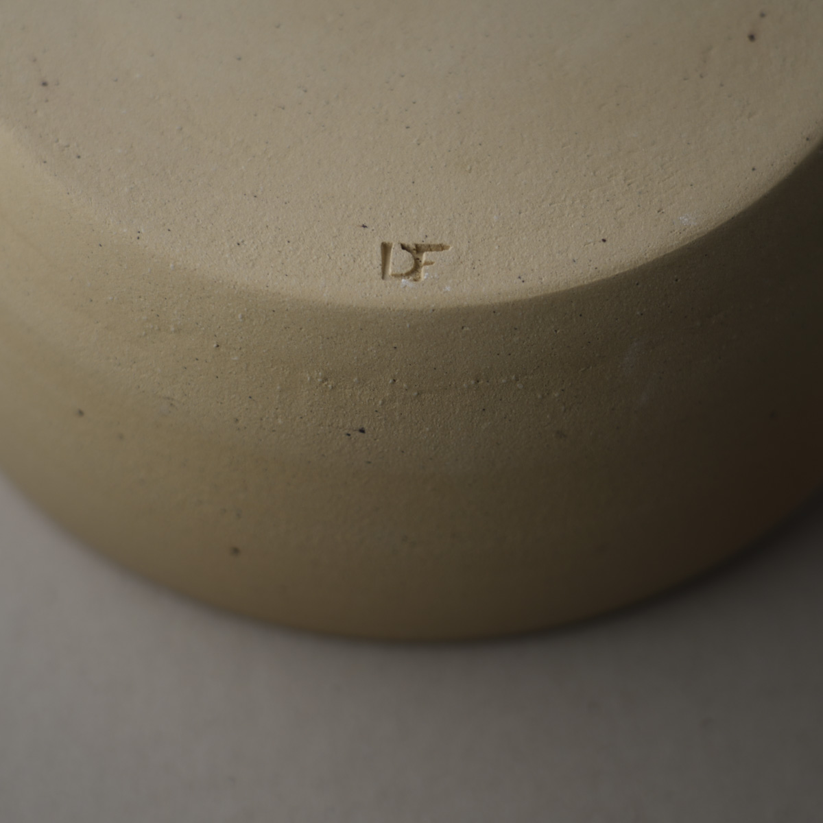Unieke kom of schaaltje met witte klei, binnen in met transparante glazuur ⦰ 21  ↕ 5 cm.